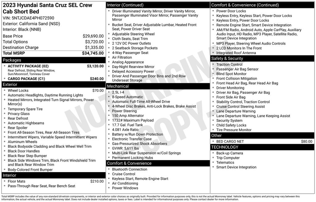 Recent Arrival! California Sand 2023 Hyundai Santa Cruz SEL AWD 8-Speed Automatic with SHIFTRONIC 2.5L I4 Call (315)252-7255. 10.25" Digital Instrument Cluster, 115V AC Power Inverter in Bed, 2 LED Bed Lighting, Activity Package, Conventional Power Sunroof, Dual C-Channel Utility Tracks on Bed Side, Integrated Tonneau Cover, LED Front & Rear Maplights, Option Group 02, Rear Sliding Glass Window w/Rear Defroster, Roof Side Rails, Wireless Phone Charger (15W).