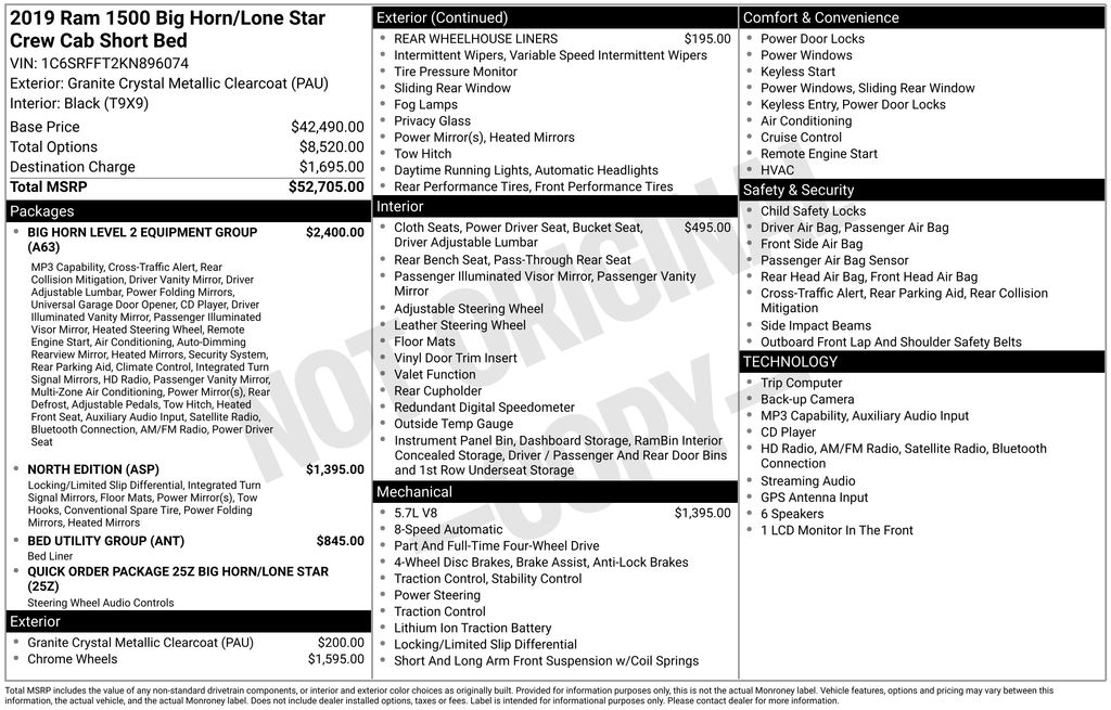 Recent Arrival! Granite Crystal Metallic Clearcoat 2019 Ram 1500 Big Horn/Lone Star 4WD 8-Speed Automatic HEMI 5.7L V8 Multi Displacement VVT Call (315)252-7255. Awards: * Motor Trend Automobiles of the year * NACTOY 2019 North American Truck of the Year * 2019 KBB.com Best Auto Tech Awards * 2019 KBB.com 10 Favorite New-for-2019 Cars * 2019 KBB.com 10 Best Road Trip Cars